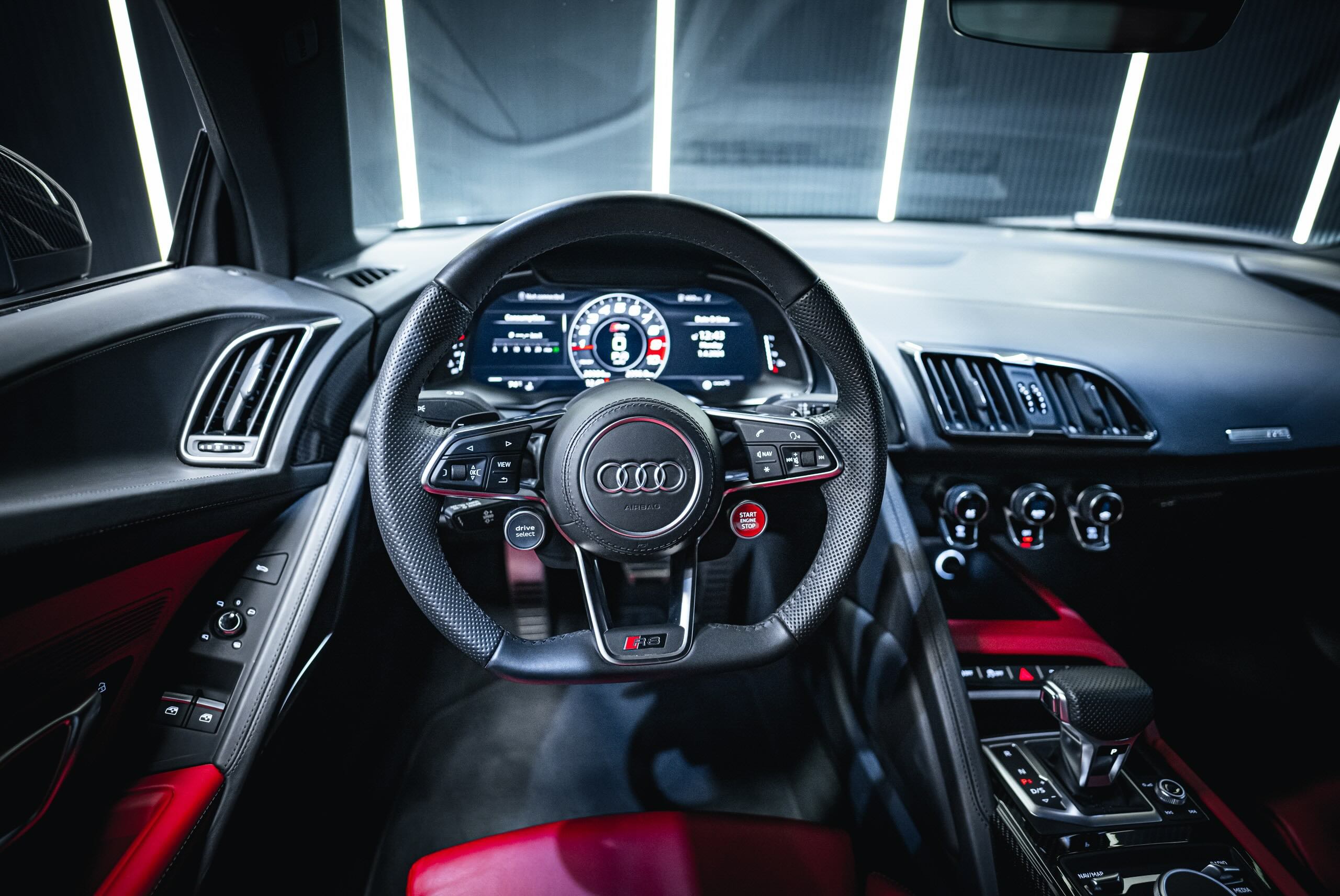 The power steering is tuned to directly transfer your steering effort and provide exceptionally precise feedback to the road. To help keep speeds down, the R8 Coupé V10 features carbon fiber-reinforced ceramic brakes as standard.