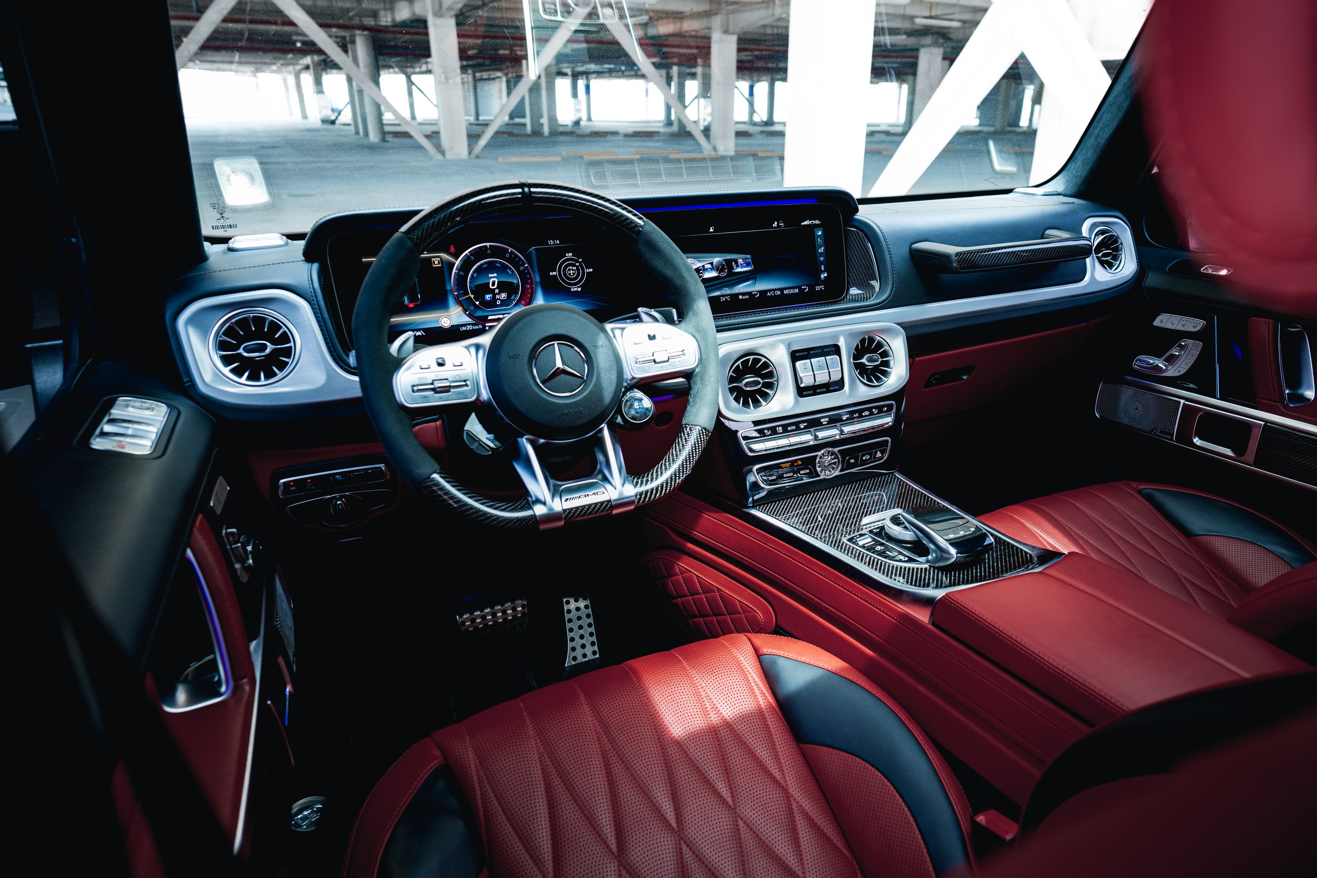 The 2022 G63 has a standard 12.0-inch infotainment interface with Android Auto and Apple CarPlay integration as well as navigation. There are two USB ports up front, along with an SD card reader.