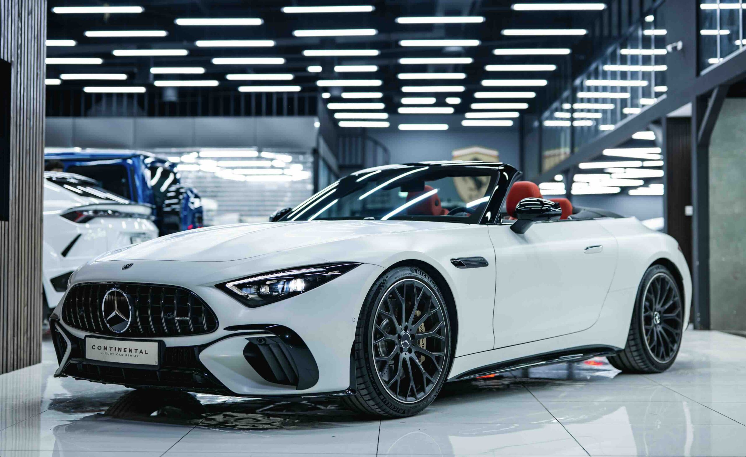 The Mercedes-Benz SL 63 AMG is a modern icon — a luxury roadster that blends open-top freedom with true AMG performance. Its long, elegant proportions, aggressive front end, and sleek retractable roof make it a head-turner whether cruising the coastline or arriving at a hotel entrance.