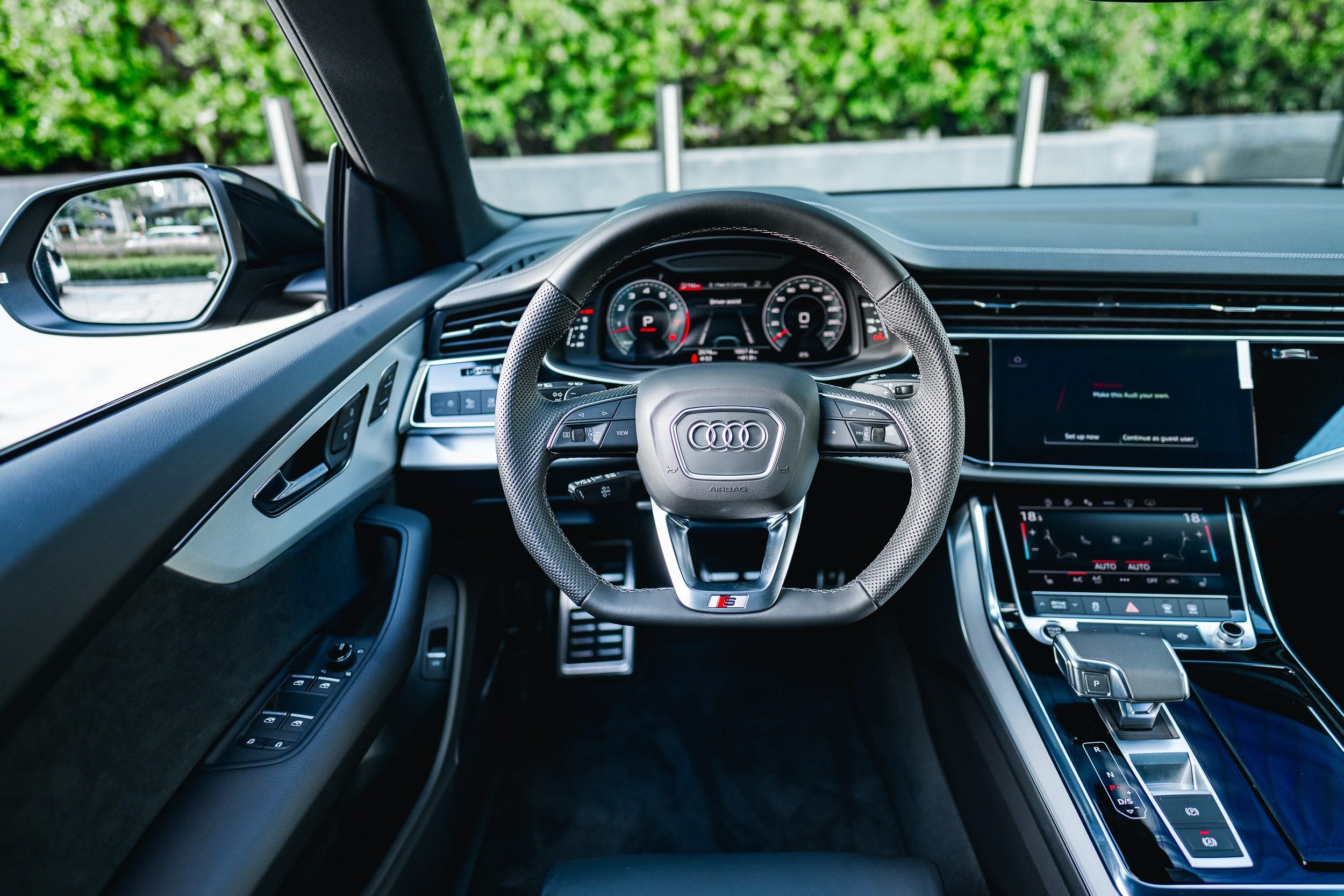 Audi также предлагает опциональное полноуправляемое шасси. Задние колеса могут поворачиваться до 5 градусов — против направления поворота на малой скорости для повышения маневренности и в направлении поворота на высокой скорости для улучшения стабильности. Все силовые установки отличаются высокой эффективностью благодаря технологии мягкого гибрида (MHEV).
