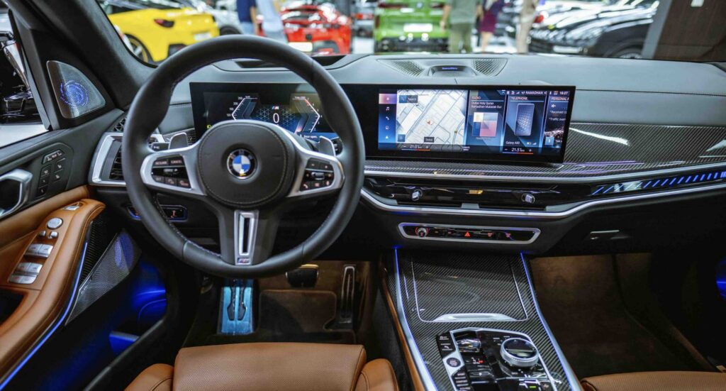 Экстерьер BMW X7 2023 — это гармония спортивности и роскоши. Изящные линии и элегантные пропорции создают величественный образ, подчеркивающий статус и престиж автомобиля.